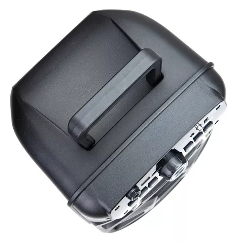 Seu design é prático e portátil, com alça resistente para facilitar o transporte e iluminação LED decorativa que dá um toque visual moderno e animado. A caixa também é bivolt, podendo ser usada em redes de energia 110V ou 220V, adaptando-se facilmente a diferentes locais.